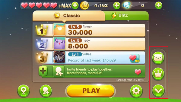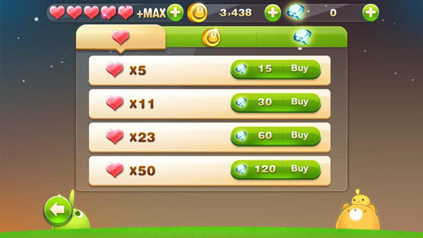 หัวใจ.... ส่วนนี้นั้นใช้สำหรับเป็นตัวแทนชีวิต ที่สามารถเล่นเกมส์ในแต่ละครั้ง จะมีให้อัตโนมติเมื่อมีการเข้ามาเล่น หรือหากใครไม่ทันใจสามารถใช้เพชร ซื้อเพิ่มเข้ามาได้เช่นกัน