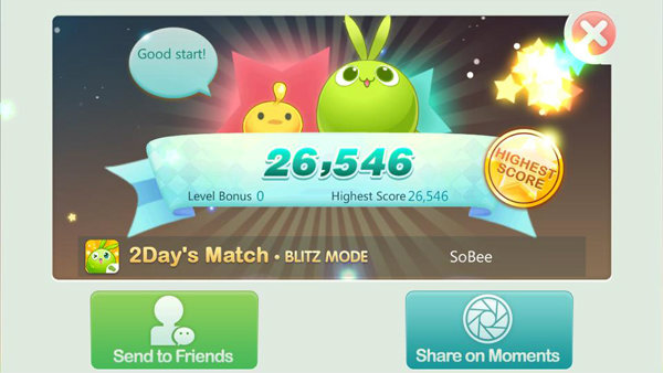 หลังจากเล่นจบเกมส์แล้ว จะมีการยืนยันคะแนนที่ผู้เล่นทำได้ และในส่วนนี้นั้นท่านสามารถ เลือก Send to Friendsและสามารถ Share on Moments สำหรับโชว์คะแนนให้เพื่อนๆ เห็นได้อีกด้วย!!