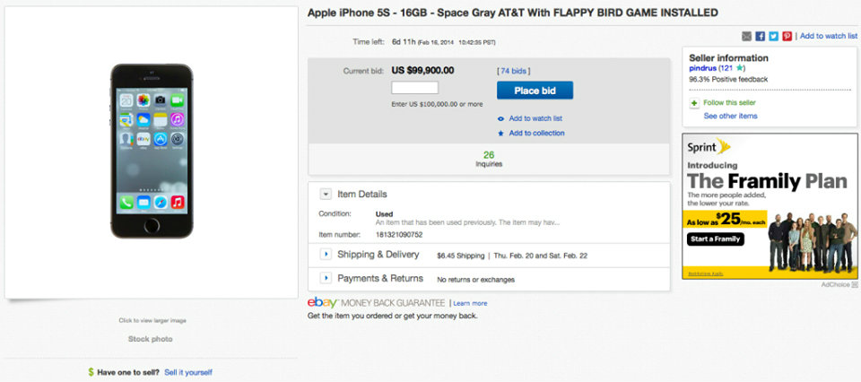 บ้าไปแล้ว!! ซื้อ iPhone 5S แถม Flappy Bird ราคา 3,277,666.59 บาท+