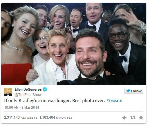 Samsung Galaxy Note 3 ถือเป็นหนึ่งในสปอนเซอร์รายใหญ่ของพิธีประกาศผลรางวัลออสการ์ที่เพิ่งจบไป สดๆ ร้อนๆ เมื่อวานนี้ นั่นจึงเป็นเหตุผลที่เราได้เห็นรูปเซลฟี่รวมดาราฮอลลีวู้ดที่ถ่ายด้วย Samsung Galaxy Note 3 ซึ่งถ้านับถึงตอนนี้ ภาพดังกล่าวถูกรีทวีตไปแล้วกว่า 3 ล้านครั้ง ถือเป็นการโฆษณาแบบเนียนๆ(เหรอ?)ที่ได้ผลดีทีเดียว
