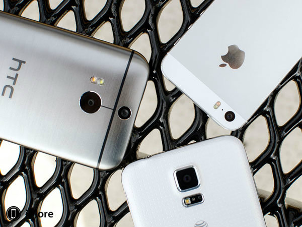 ** ซ้ายไปขวา : iPhone 5S, Samsung Galaxy S5, HTC One M8