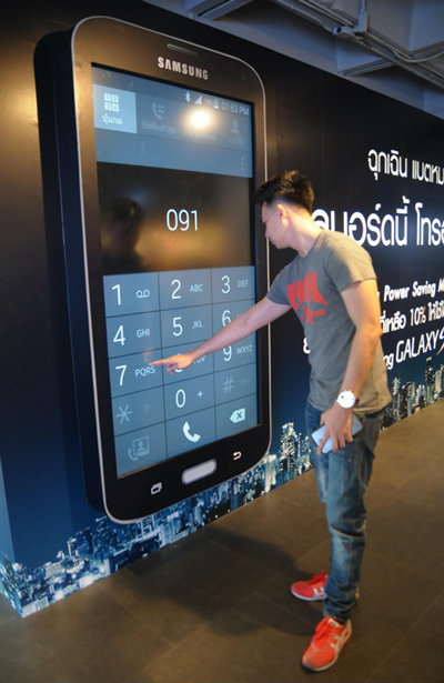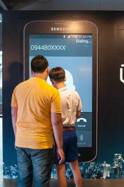 ถ้าเพื่อนๆมีโอกาสผ่านไปที่สยามเซนเตอร์ อย่าลืมแวะไปลองที่ชั้นสอง ใกล้กับประตูทางออก BTS หรือเพื่อนๆคนไหนนัดเพื่อนไว้ที่สยามเซ็นเตอร์แล้วแบตใกล้จะหมดลองใช้ Billboard Samsung Galaxy S5 นี้โทรออกไปหาเพื่อนของคุณดูนะครับ