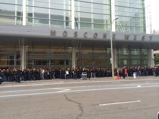 บรรยากาศหน้าหอประชุม Moscone Center สถานที่จัดงาน #WWDC2014 ของ Apple ครับ