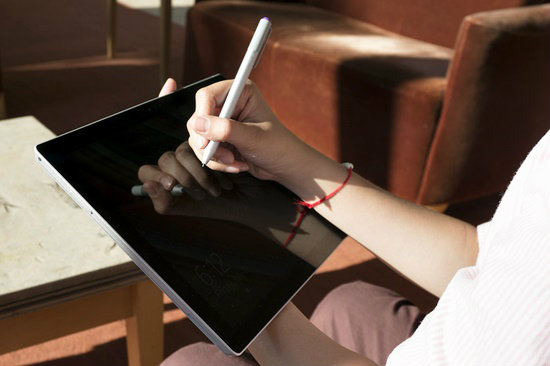 ตามที่ทุกท่านน่าจะได้อ่านเรื่องเทคโนโลยีของตัวปากกามาโดยละเอียดแล้วจากข่าวของ เจาะลึก Surface Pen ไขปริศนาปากกา Surface Pro 3 จากที่ผมได้ลองใช้งานจริงๆ พบว่า รูปทรงปากกาออกแบบมาได้สวยกว่ารุ่นที่ผ่านมาและจับได้กระชับมือดีมาก ปุ่มบนตัวปากกาออกแบบให้ใช้สำหรับการลบและเลือกใน OneNote การใช้งานจริงพบว่าขณะจับปากกาเขียนนิ้วมักไปโดนปุ่มค่อนข้างบ่อย ตรงจุดนี้โดยส่วนตัวผมคิดว่าน่าจะออกแบบปุ่มให้ไม่นูนออกมา คือให้ใช้แรงกดลงไปเพื่อกันการกดโดนโดยไม่ตั้งใจครับ