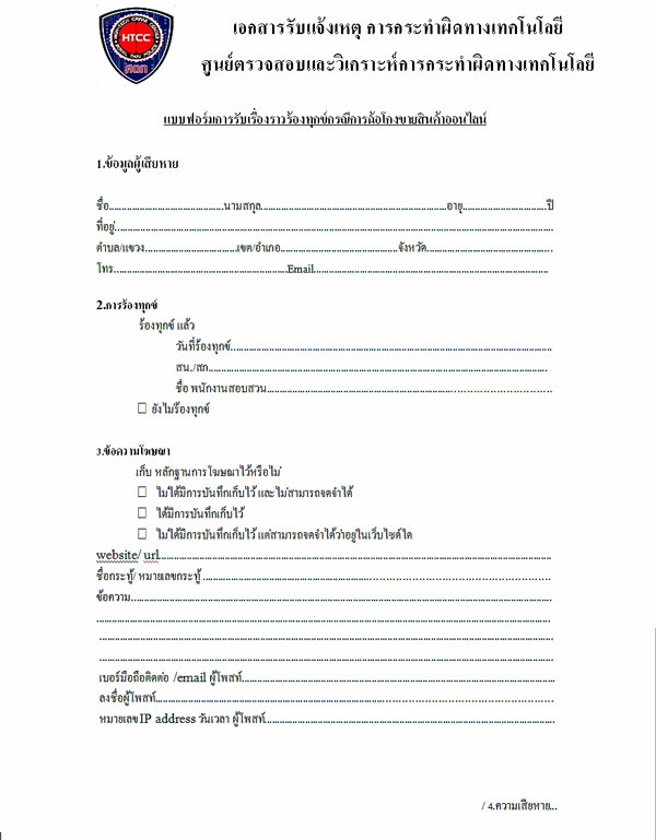หลังจากไปแจ้งความแล้วให้ไปดาวโหลดแบบฟอร์ม แล้วยื่นเรื่องต่อ "ศูนย์ตรวจสอบและวิเคราะห์การกระทำผิดทางเทคโนโลยี" เห็นจับได้มาหลายรายแล้วที่ฉ้อโกงผ่านทางเว็ปบอร์ดต่างๆ